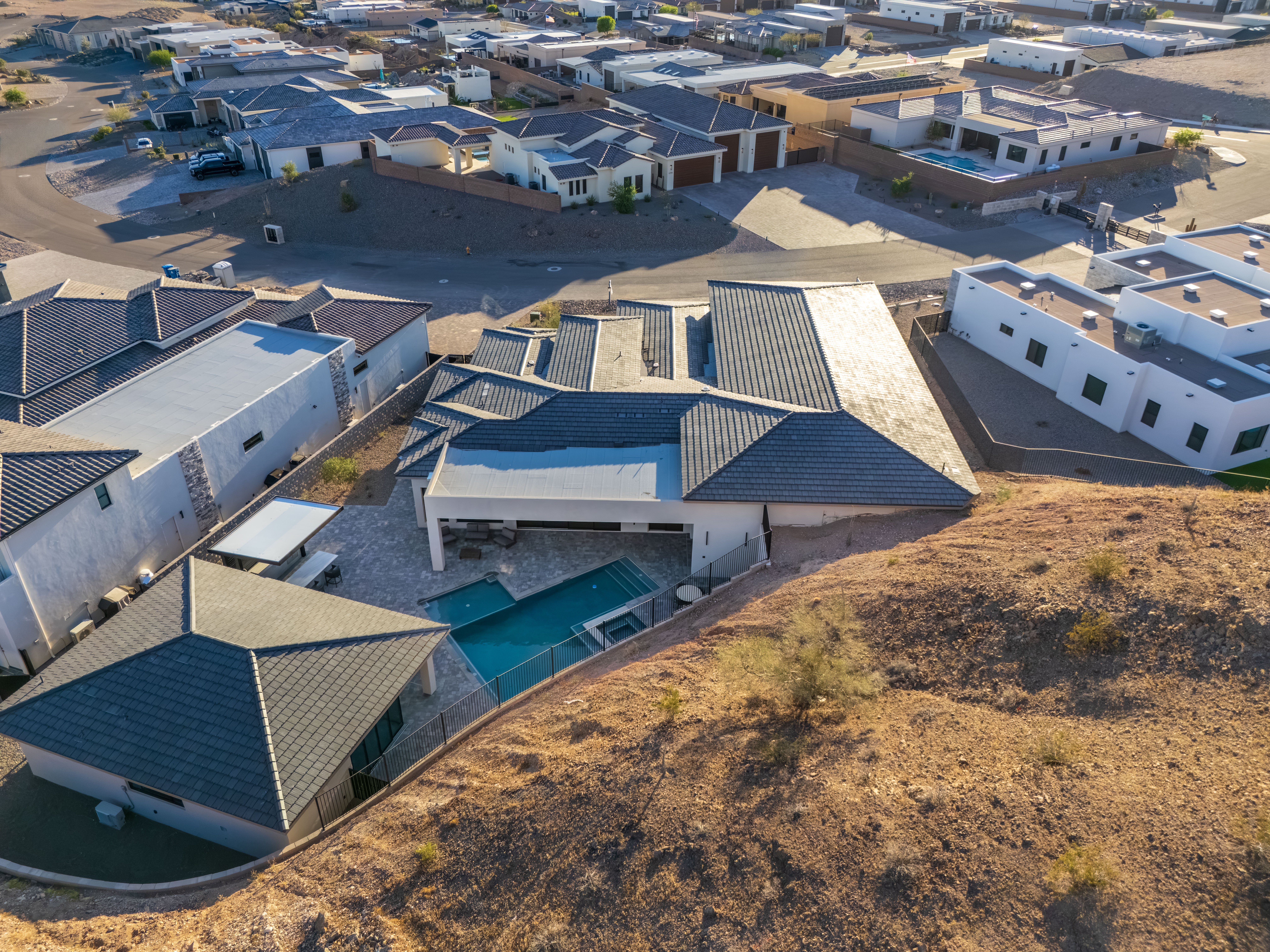 This custom Moran AZ Homes property is designed with both luxury and functionality in mind, highlighted by an impressive 3,727 sq ft garage. With two extra-deep motorhome bays and a full garage bathroom, it’s perfectly equipped for RVs, boats, and all your desert and lake toys—making it a dream setup for adventure-driven lifestyles.
